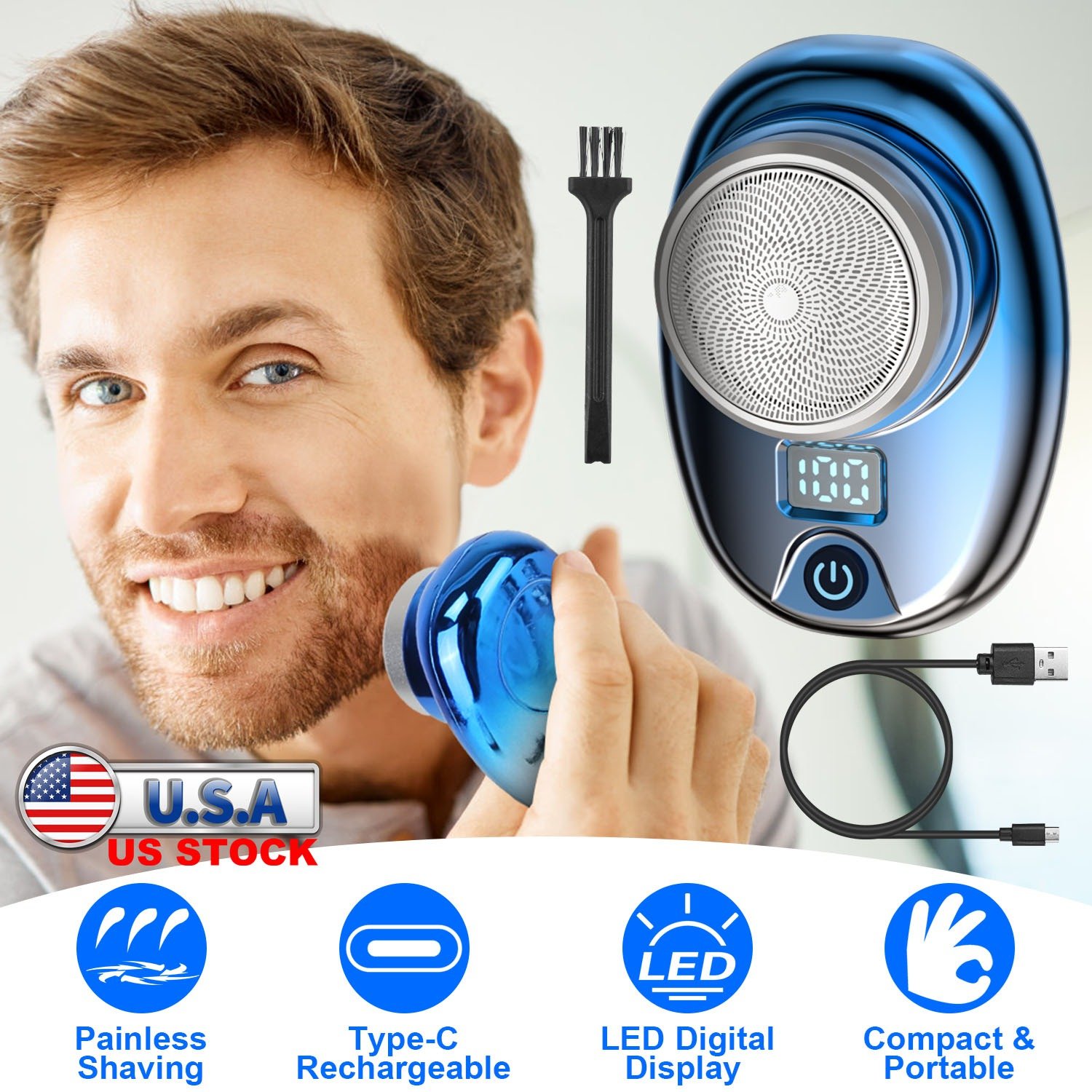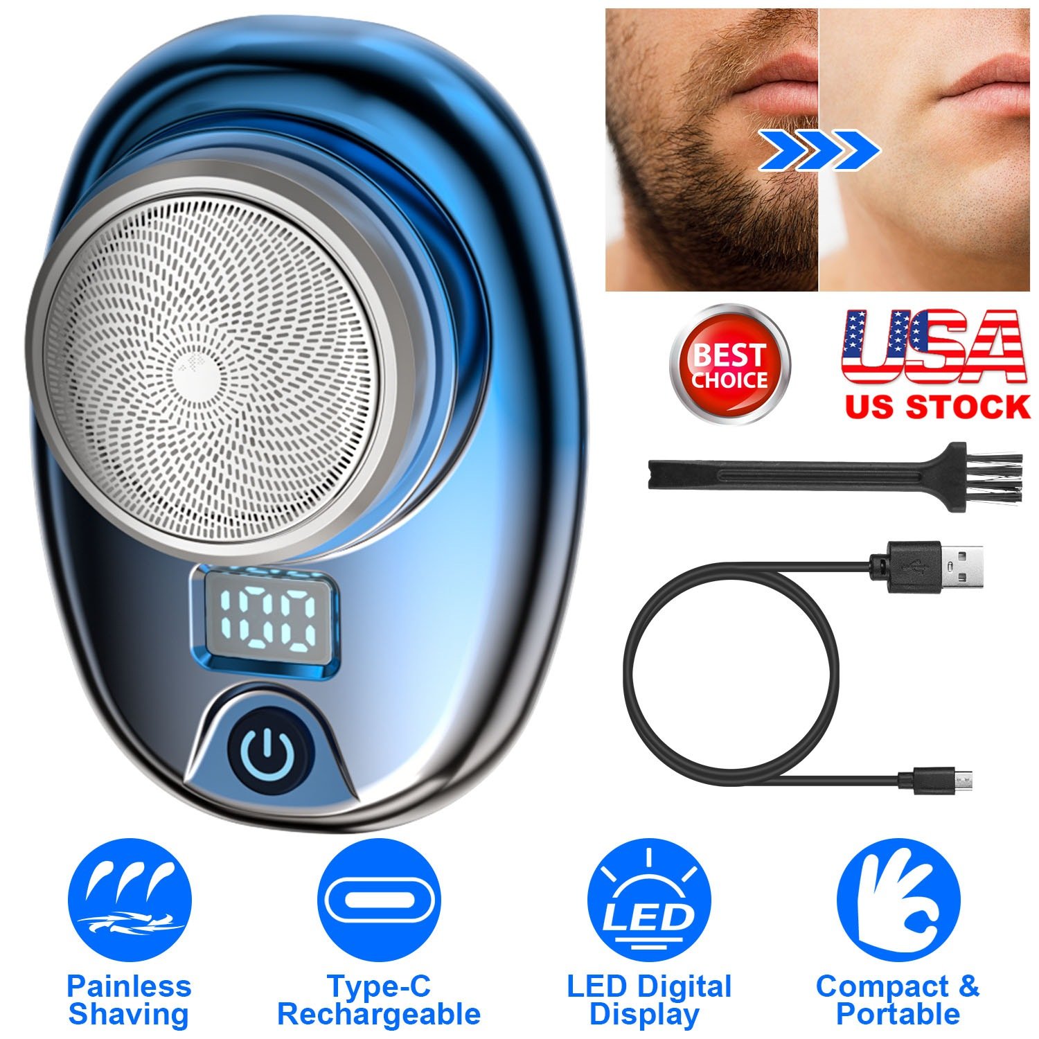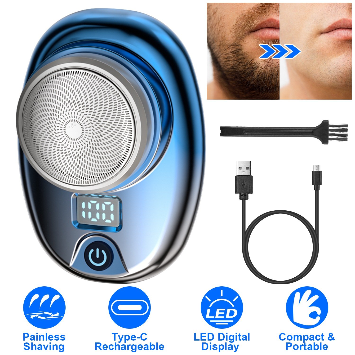 Our electric men\'s shaver features 6 sharp blades under an ultra-thin steel net for precise and painless shaving. Powerful and low power-consumption motor ensures quiet operation. This compact and portable shaver weighs only 0.17lbs and measures 2.95x2.16x1.57in in size, making it easy to store in your pocket or bag for home, travel, office, or car use. Type-C rechargeable battery is convenient to recharge via laptop, power bank, adapter and more. Available in 3 different colors, this portable electric men shaver is an ideal gift to show your love and concern for your father or lover in special days.