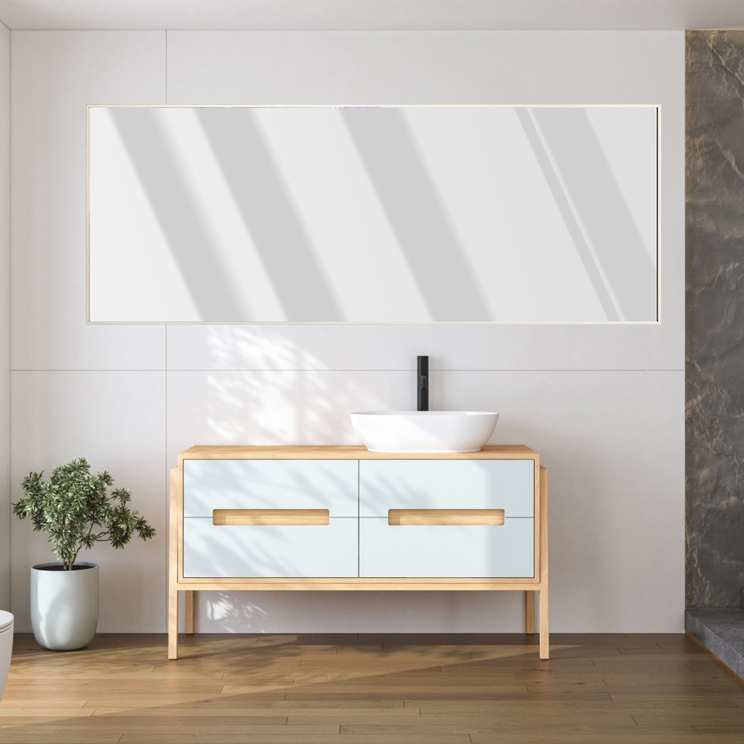 This rectangle metal mirror comes with aluminum alloy frame, which is durable. The leaner mirror provides a full-body reflection while blending in with the rest of your home decor. The leaning stand can easily pop out, providing you with a free-standing mirror you can place anywhere. The holes on the back also allow you to mount it on the wall, too! You can mount it horizontally or vertically. It offers endless versatility for any space, designed to make your space appear larger by letting light bounce around. Perfect gifts for yourself and friends.