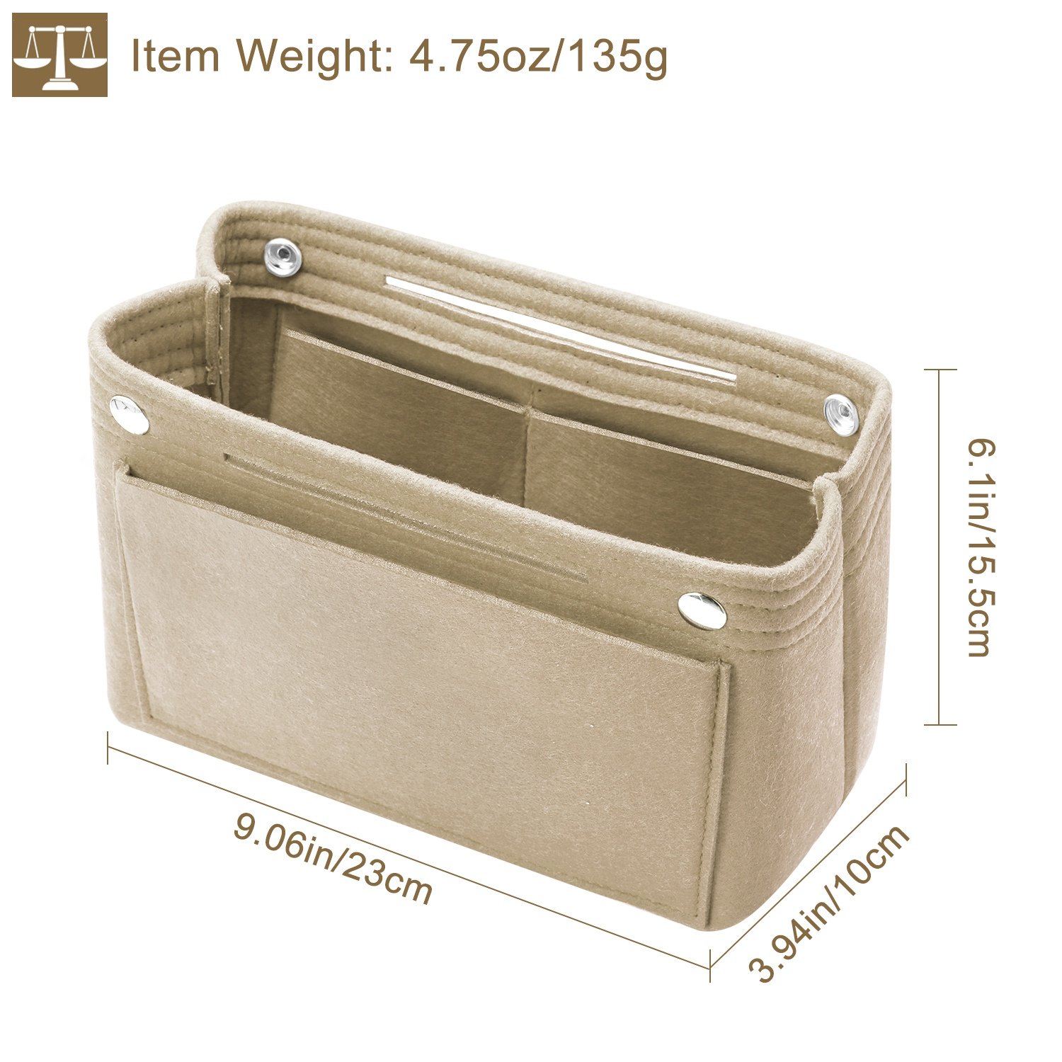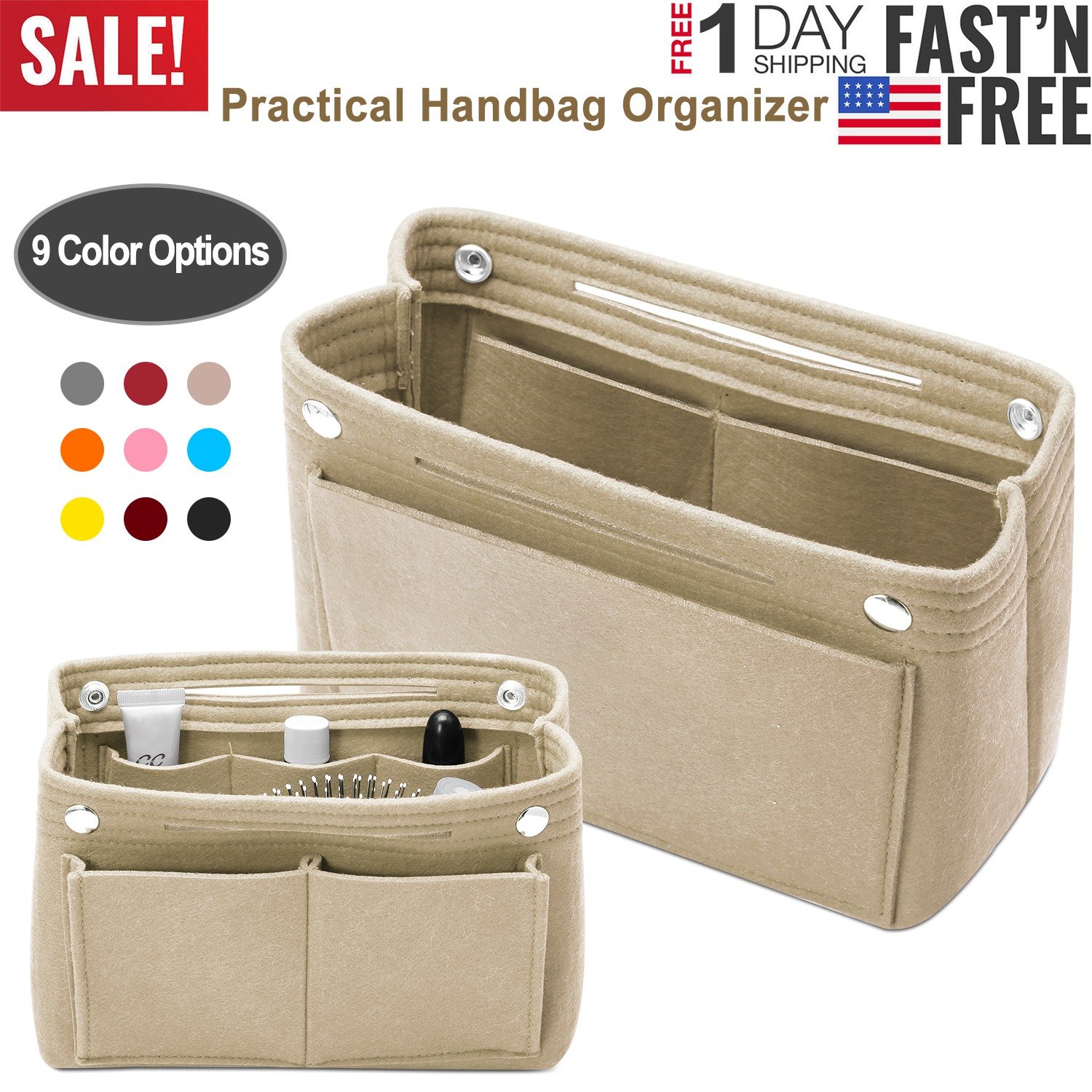 Are you tired of taking gadgets from a messy handbag time after time? Our felt insert handbag can put your things in order and keep handbag well-organized, saving your much time on finding stuff or reorganizing. This bag in bag owns a compact body and provides huge capacity with 9 compartments, easily taking in and out. It adopts selected carefully felt fabric to offer soft touching and durable use. The snap closure design can keep your things safe and prevent from slipping out. Available in 9 colors of Red, Orange, Gray, Black, Wine Red, Yellow, Pink, Blue and White, offers many options for you, easy to match your different color bag.