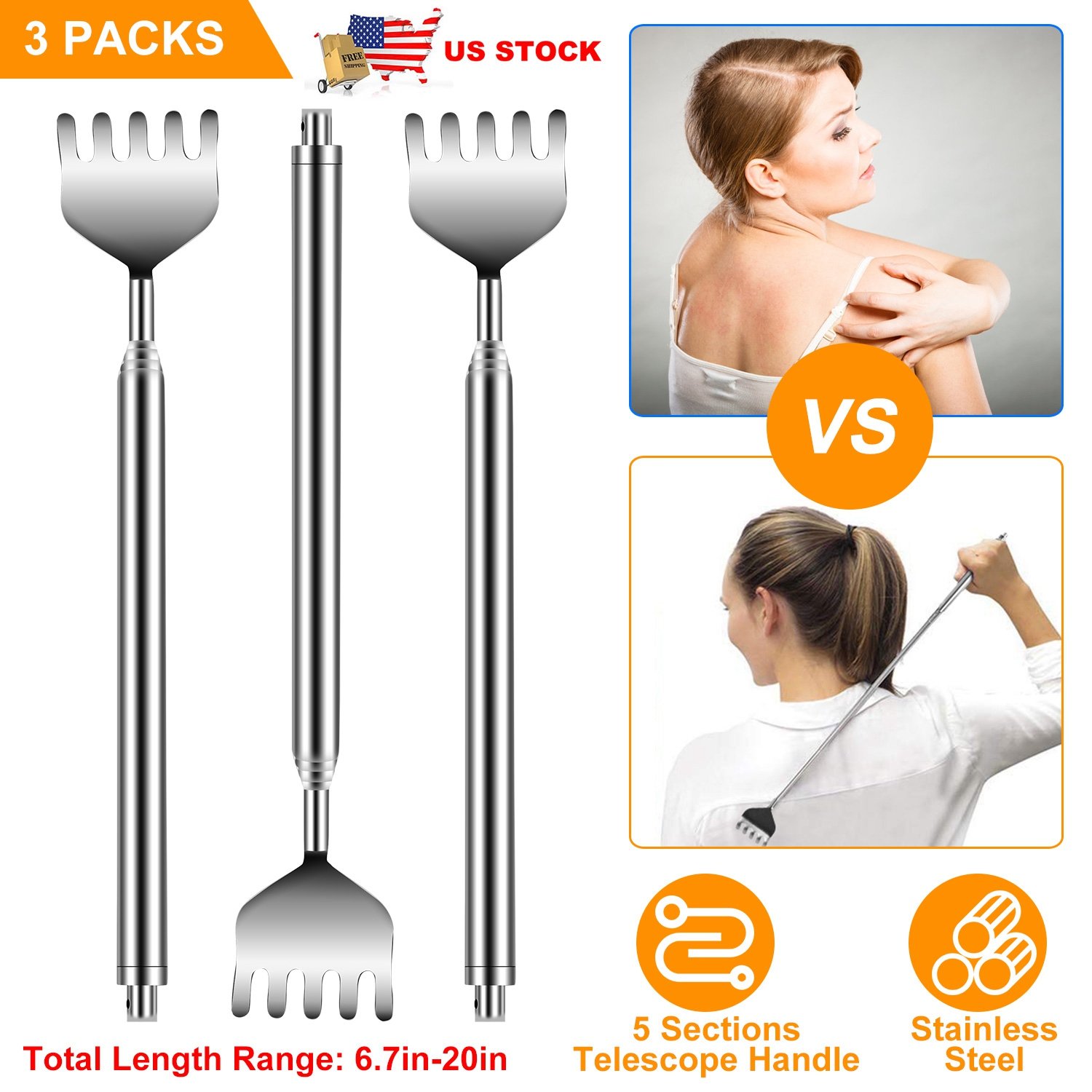 3pcs 20" Telescopic Back Scratcher Stainless Steel Extendable Bear Eagle Claw Massager